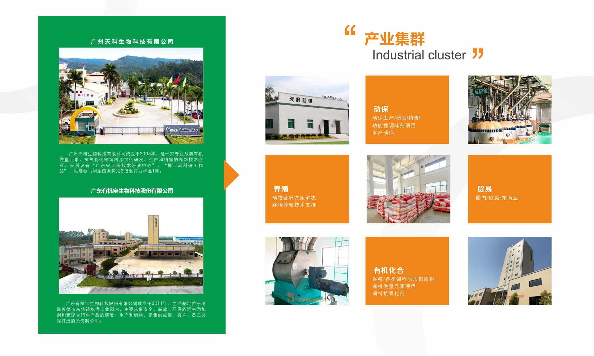 天科公司始創(chuàng)于1997年,是一家集研發(fā)、生產(chǎn)和銷售于一體的、處于行業(yè)領先地位的高新技術企業(yè),主要從事無公害、綠色環(huán)保型飼料添加劑、添加劑預混合飼料等的研發(fā)與生產(chǎn)。公司總部設在廣州市天河區(qū),生產(chǎn)基地位于廣州市花都區(qū)和英德市清遠華僑工業(yè)園內(nèi),總占地面積逾80000平方米。集團下屬廣州天科生物科技有限公司順利通過ISO9001質量管理體系、ISO22000食品安全管理體系和FAMI-QS歐洲飼料添加劑和預混合飼料質量體系認證,廣州天科生物科技有限公司產(chǎn)品質量檢測中心通過中國合格評定認可委員會(CNAS)認證。